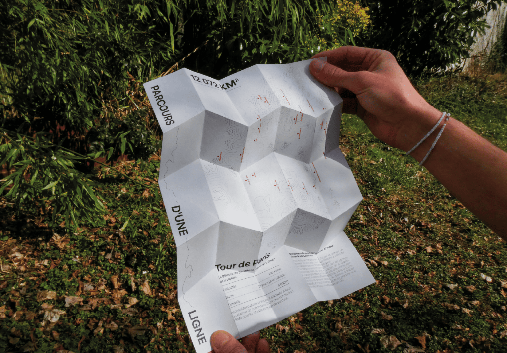 or roads, it concentrates on the lines: trails, reliefs, markers
